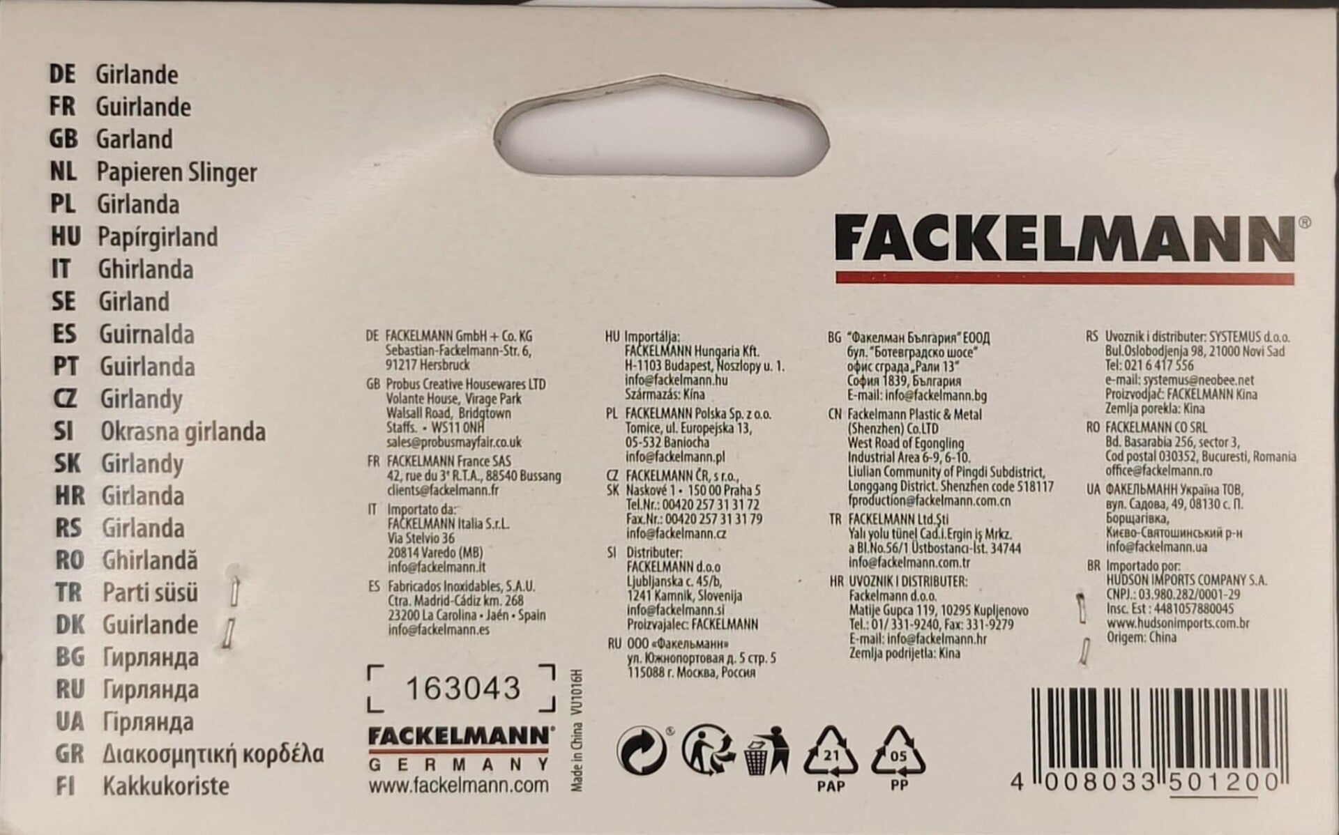 1× Fackelmann Girlande „Happy Birthday“