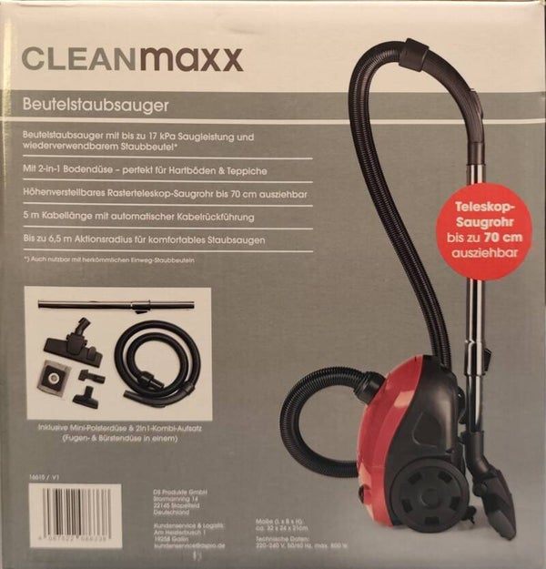 Der CLEANmaxx Beutelstaubsauger überzeugt durch starke Saugleistung, handliches Design und einfache Bedienung. Ideal für die gründliche Reinigung von Hartböden, Teppichen und Polstern. Der wiederverwendbare Staubbeutel spart Folgekosten und reduziert Abfall – perfekt für nachhaltiges Reinigen.